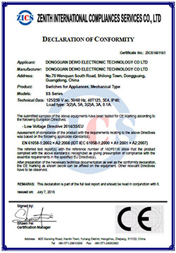 基本型微動(dòng)開(kāi)關(guān)CE證書(shū)