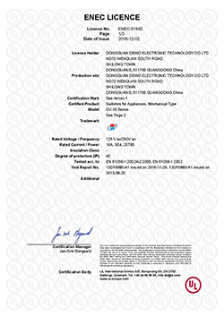 基本型微動(dòng)開(kāi)關(guān)ENEC證書(shū)